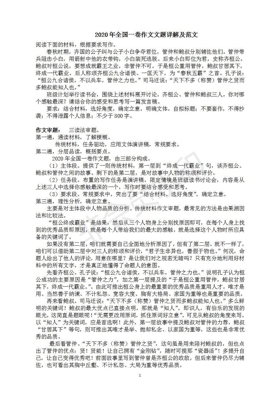 语文--2020年全国一卷作文文题详解及范文
