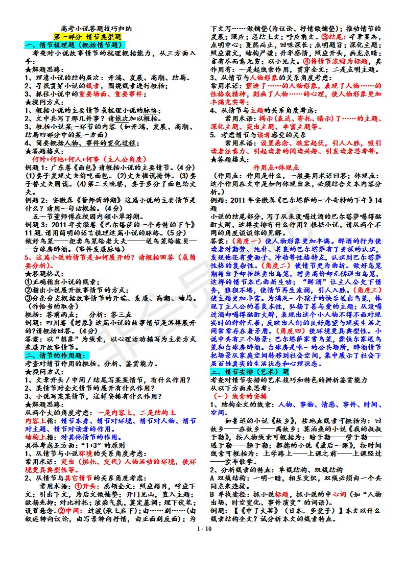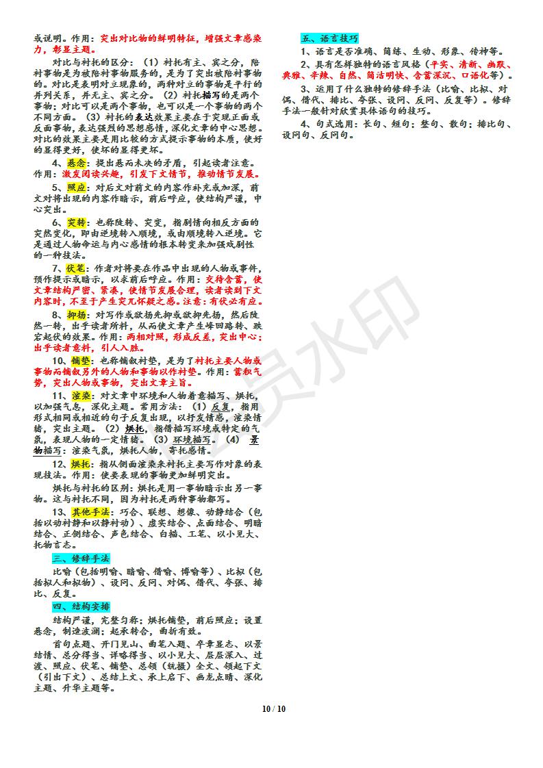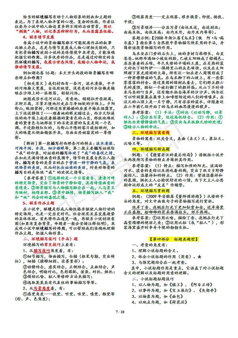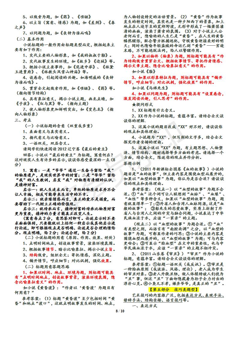 语文--小说答题技巧归纳