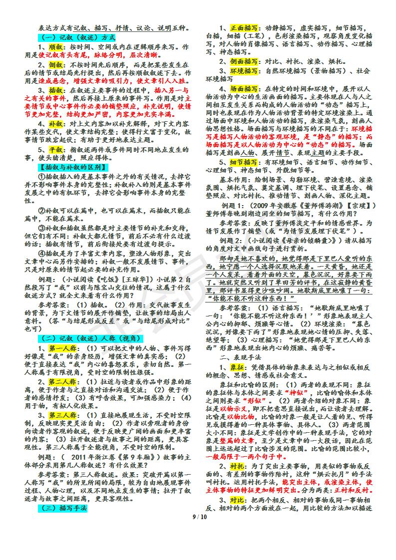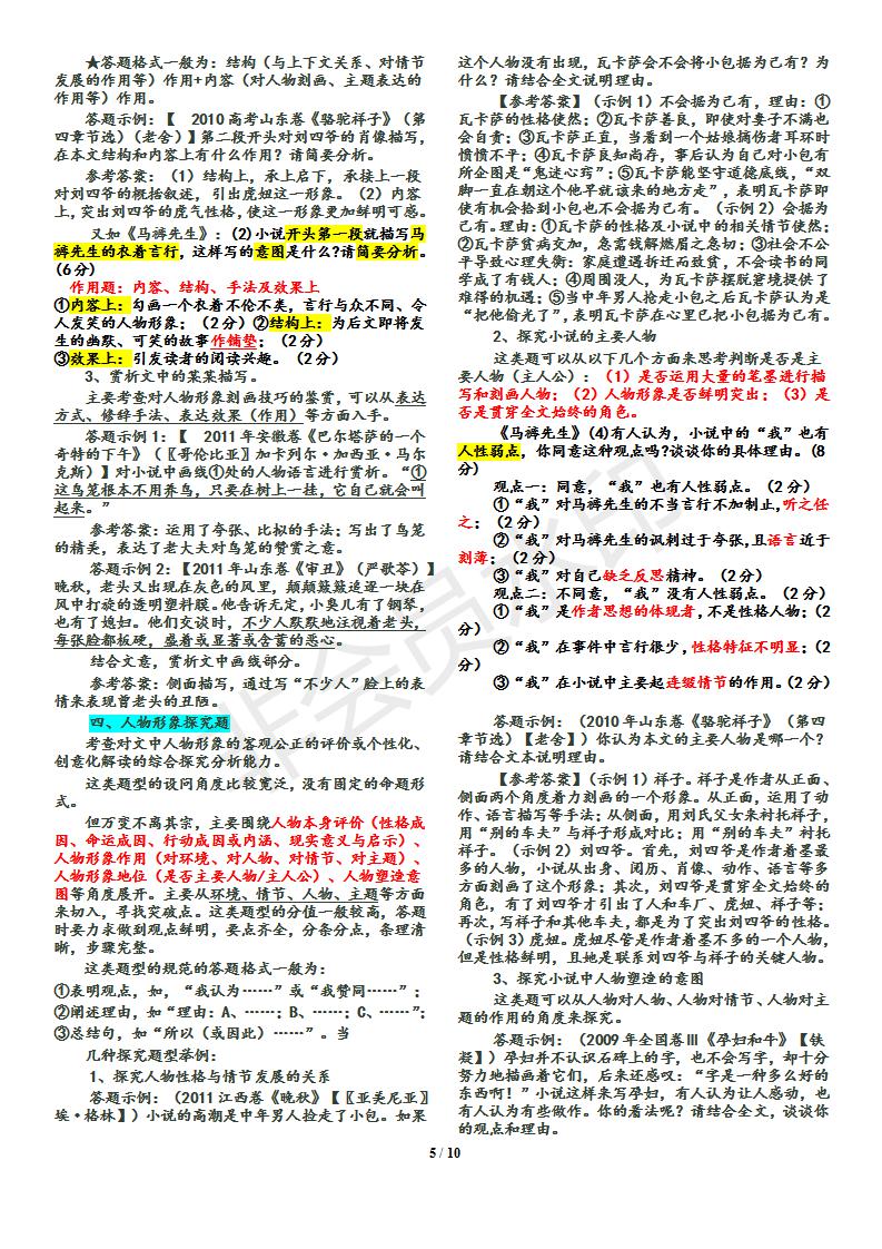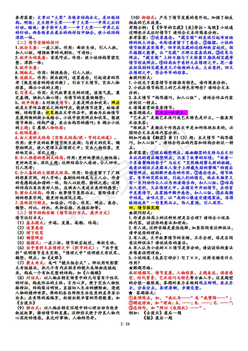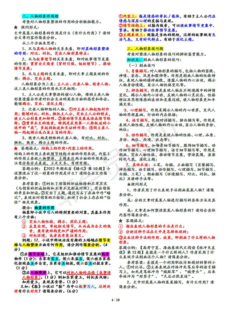 语文--小说答题技巧归纳