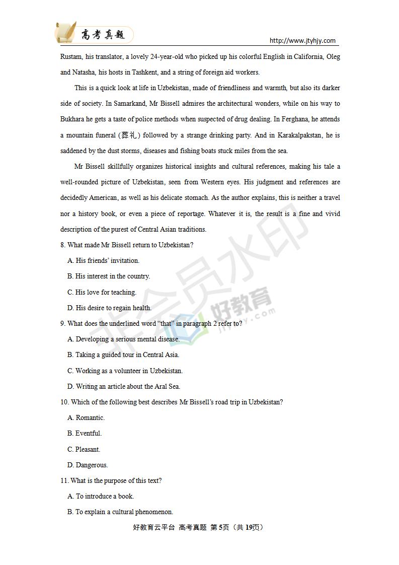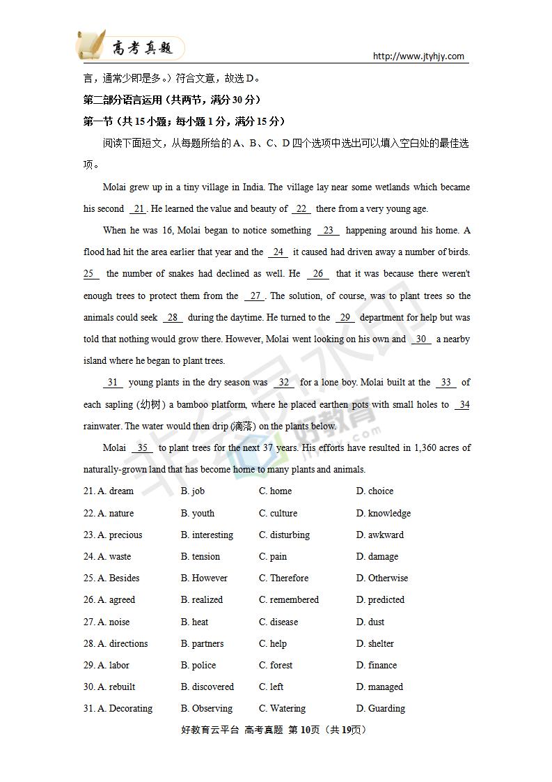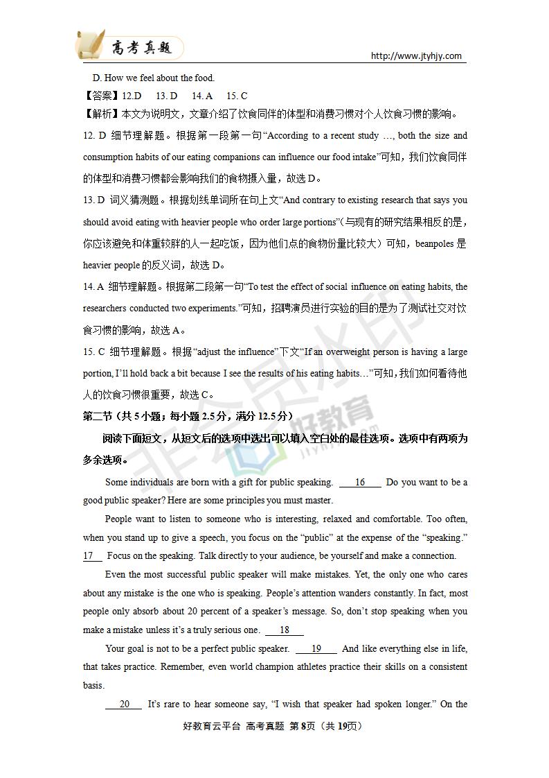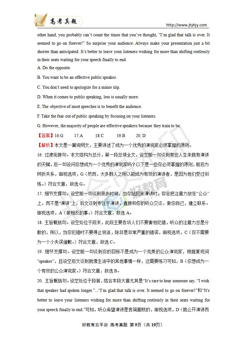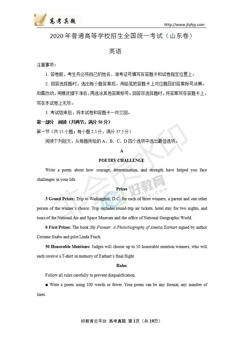 英语--2020年普通高等学校招生全国统一考试 英语 (山东卷)