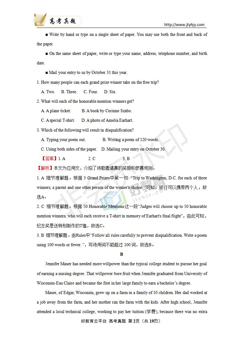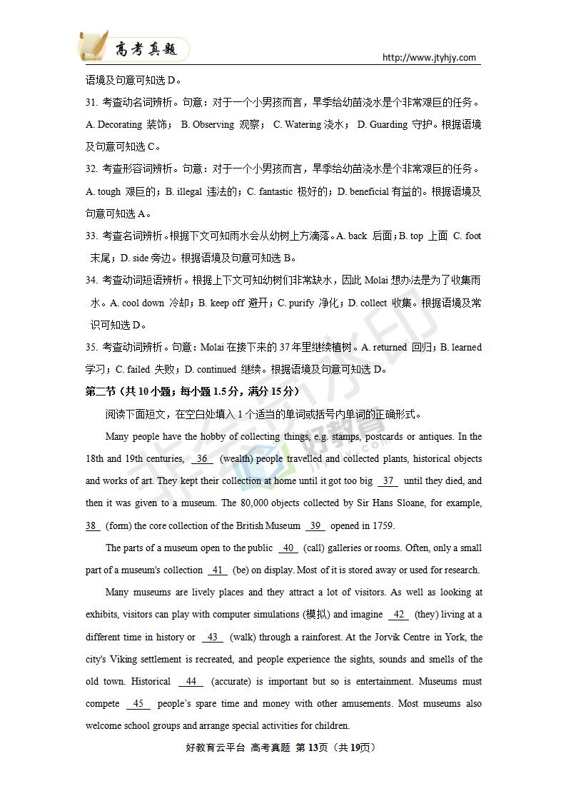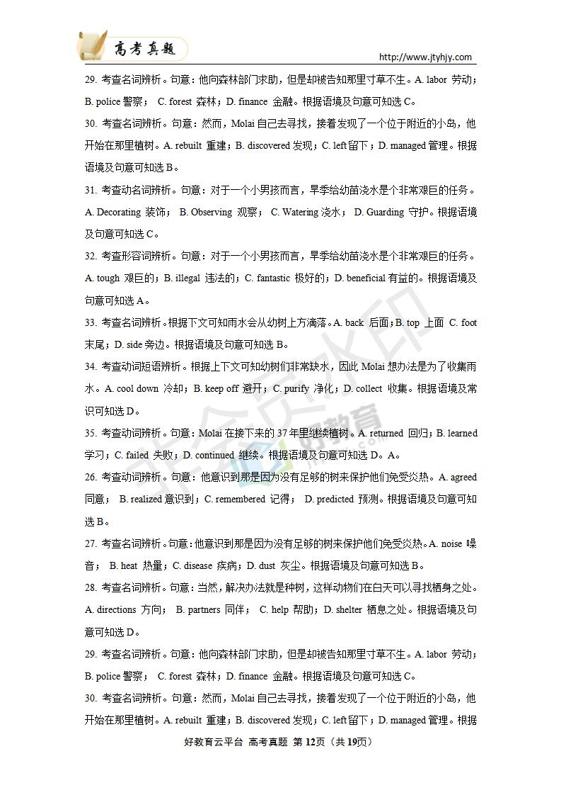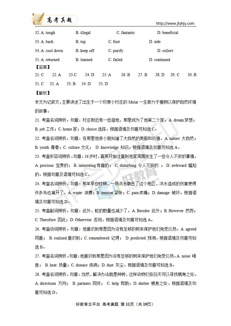 英语--2020年普通高等学校招生全国统一考试 英语(浙江卷) 解析版