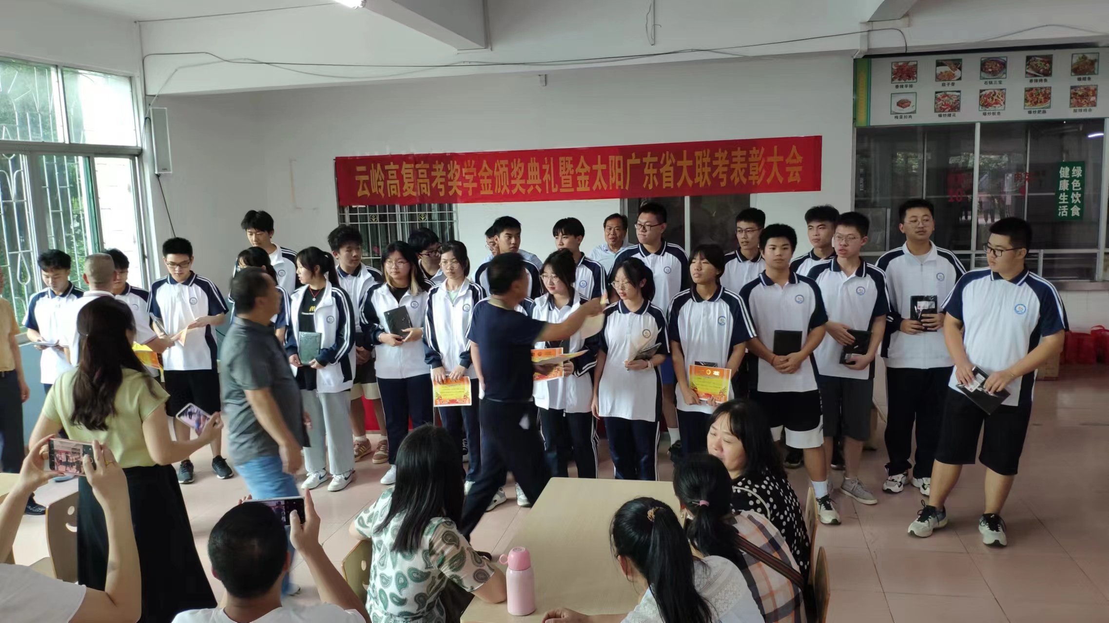 大会向2023届考入中山大学的谢欣慧同学颁发了2万元奖金,家长送锦旗致谢。