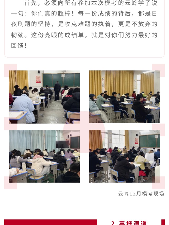 云岭高考十二月模考喜报