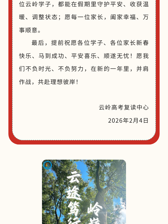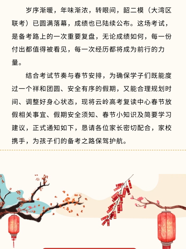 【韶二模在即】云岭复读中心致家长信:陪孩子从容应战,冲刺期末收官之战