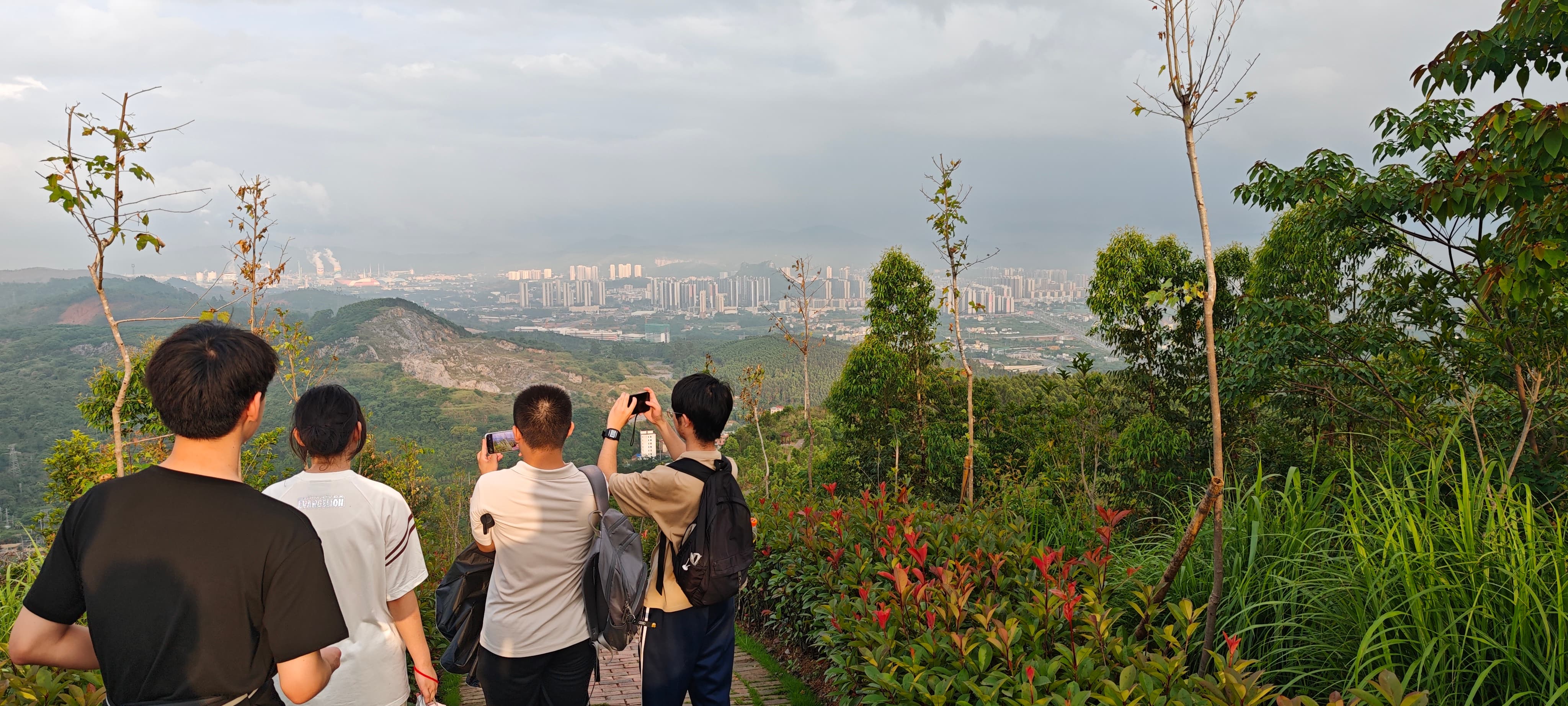 张九龄纪念公园依山而建,满目苍翠间藏着雅致景致。沿着蜿蜒的登山步道前行,草木的清香伴着山间清风扑面而来,驱散了连日刷题的疲惫。远处青山如黛,近处繁花似锦,亭台楼阁点缀在绿荫之中,随手一拍便是定格美好的画卷,学子们纷纷拿出手机,记录下这难得的惬意时刻。行走间,不时有学子驻足讨论,从张九龄的诗词文赋聊到盛唐的历史风云,课堂上的知识在自然实景中变得生动鲜活。