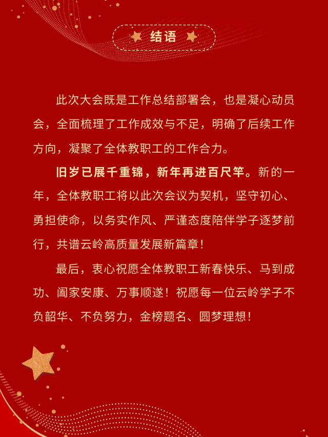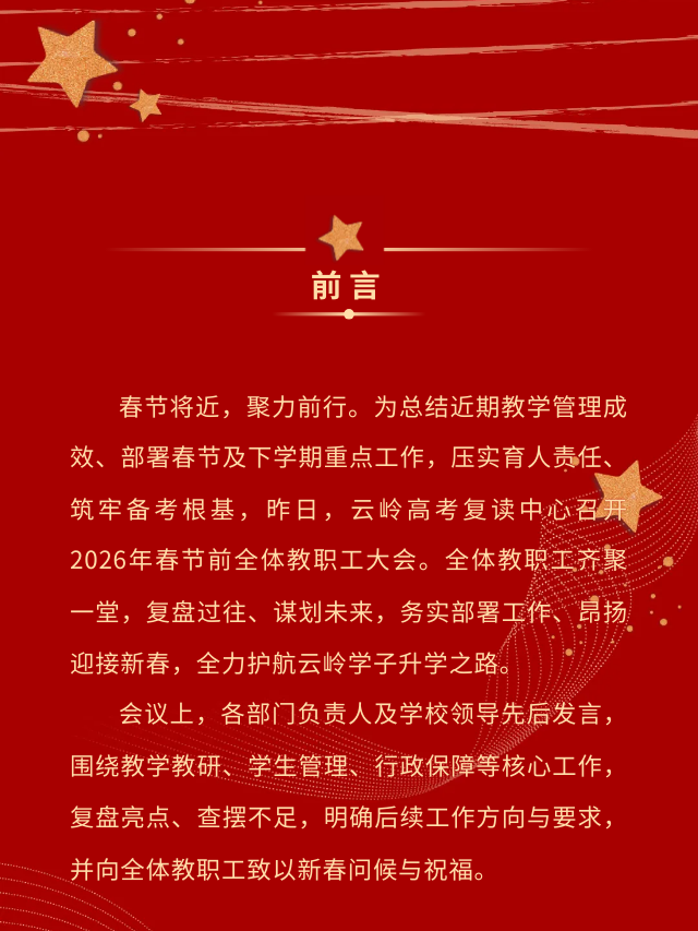 云岭高考复读中心2026年春节前全体教职工大会圆满召开