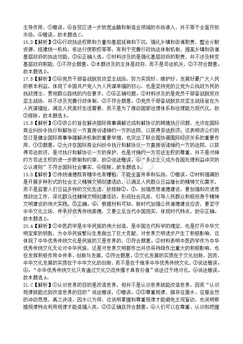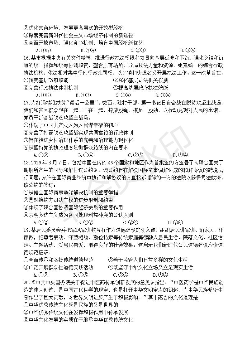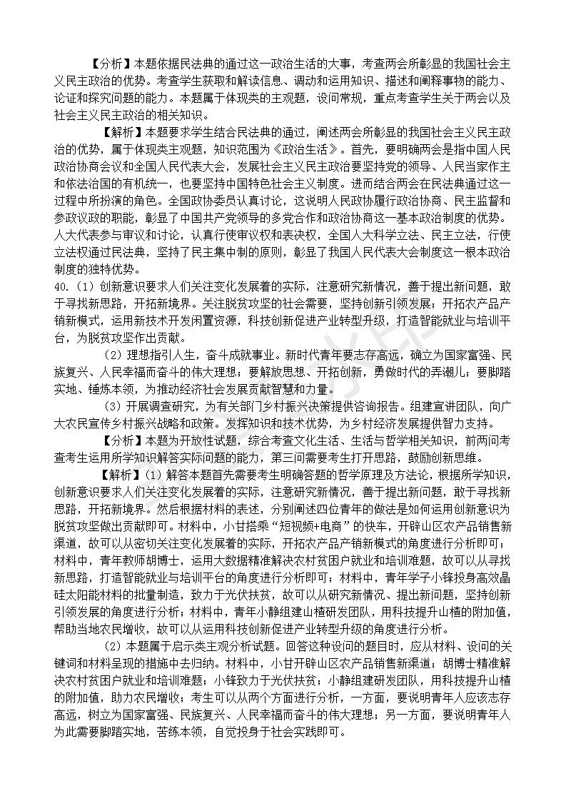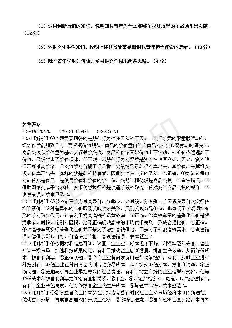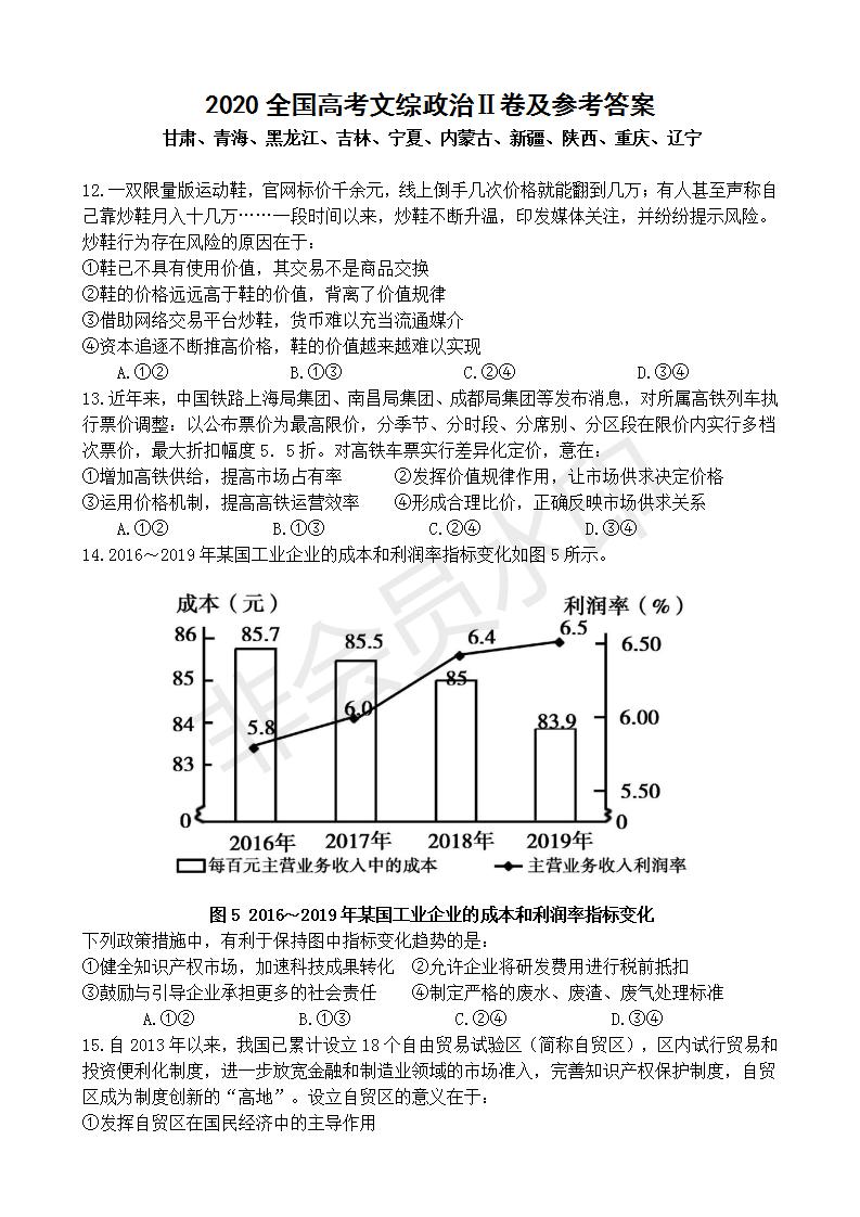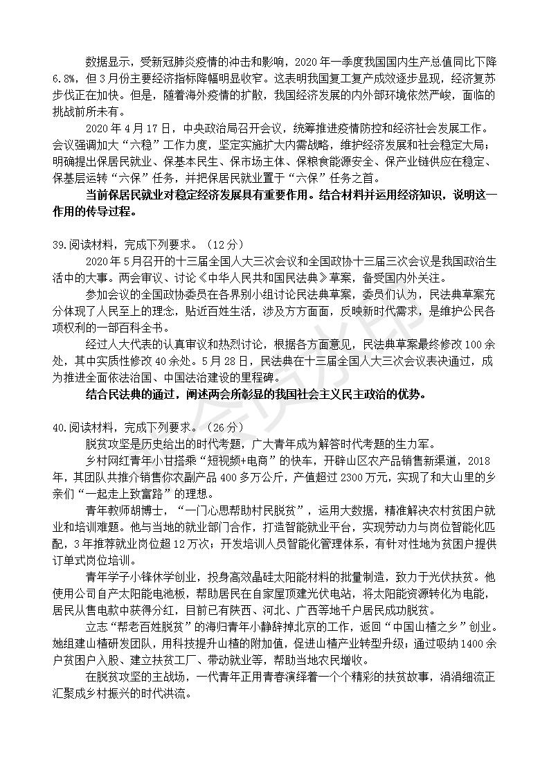 政治--2020全国高考文综政治Ⅱ卷及参考答案