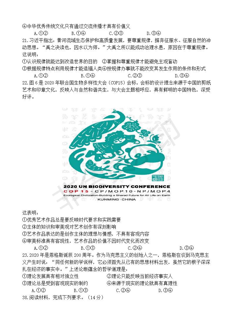 政治--2020全国高考文综政治Ⅲ卷及参考答案